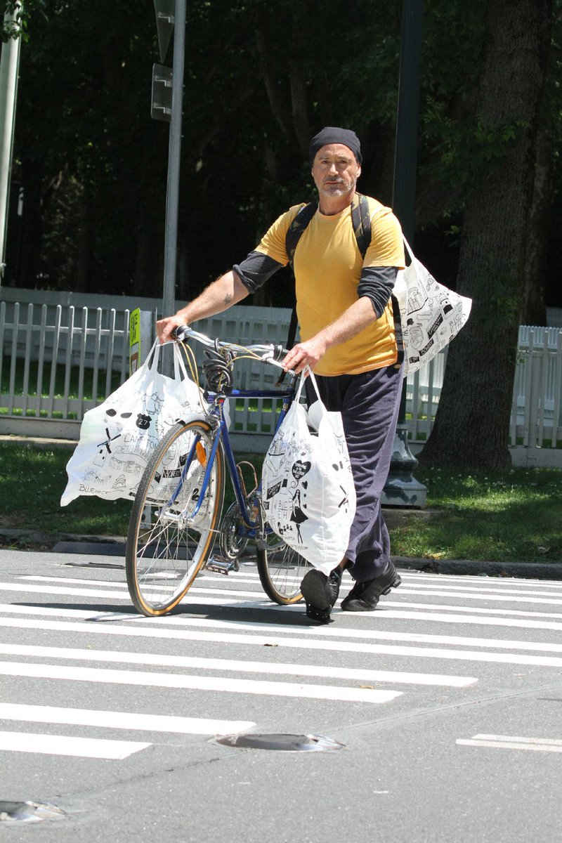 ▼小勞勃道尼私下的作風一直非常平民。他被媒體拍到身穿黃色T恤、寬鬆運動褲去購物的照片。這位身價破億的好萊塢巨星穿著打扮非常隨性,騎著腳踏車,自己扛著3個大大的購物袋,完全沒有大明星的架子。