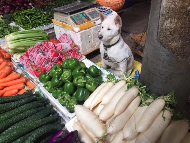 ▼不知道向這位「狗老闆」買了菜之後,有沒有附贈「摸摸頭」的服務呢?