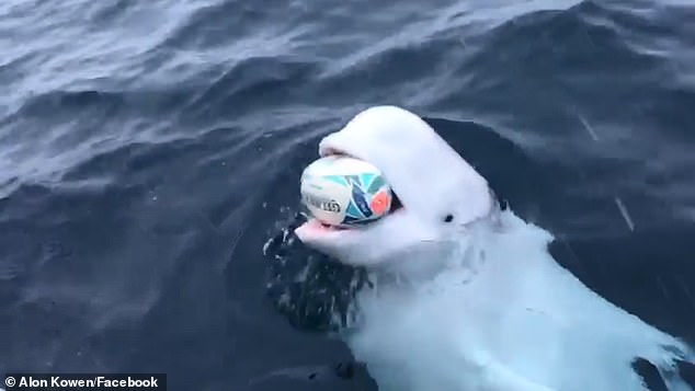 2023年06月11日很多狗狗喜歡玩拋接球的遊戲,沒想到海洋動物也愛這樣玩!最近一段有趣的短片在網路上流傳,影片中的白鯨開心與考察船的船員玩拋接橄欖球的遊戲。船員把球扔出去,白鯨就撿回來,雙方玩得不亦樂乎。