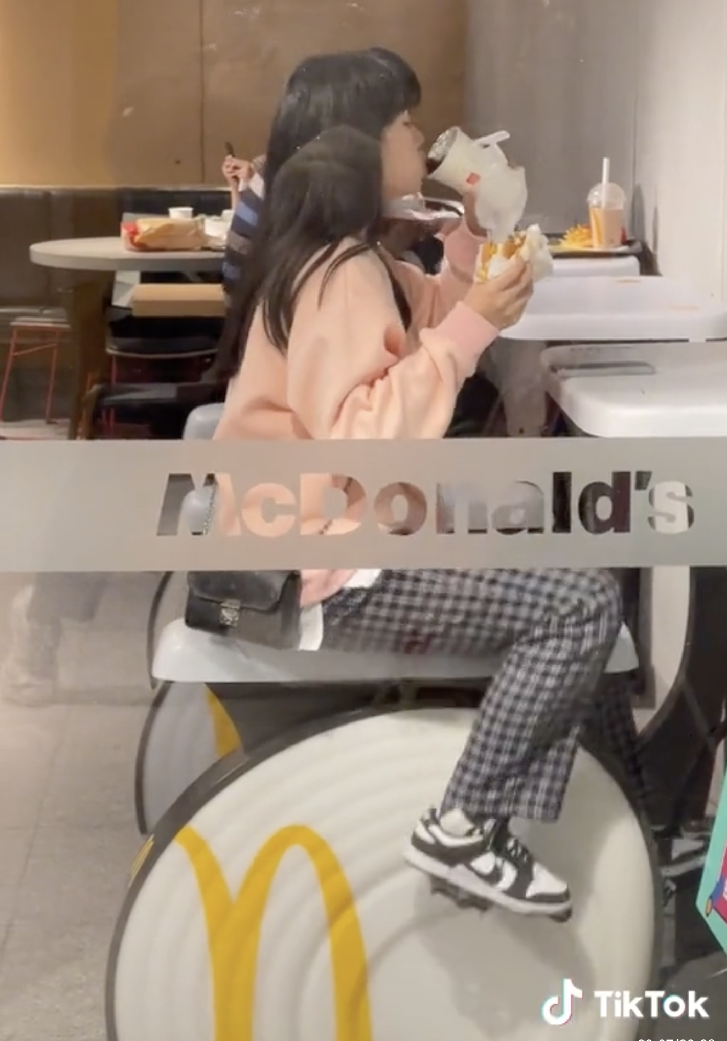 ▼原po表示,有一天她行經上海1間麥當勞時,意外發現店內設有健身腳踏車。腳踏車的前方還有桌子,顧客可以放置餐點。從原po拍攝的影片可以看到,一名坐在落地窗邊的女顧客,正一邊騎腳踏車一邊享用漢堡與飲料,那畫面非常有趣。原po忍不住笑說:「吃了等於沒吃。」