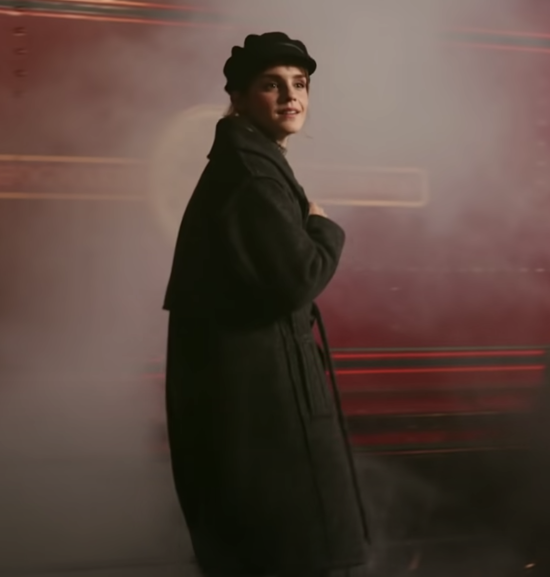 ▼艾瑪華森還穿著深灰色大衣、戴著貝蕾帽在月台等車,那造型非常時尚。