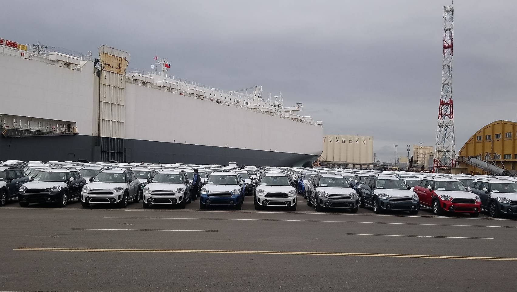 ▼汽車船翠莎號總噸位5萬6164噸級,原本定於19日抵達台中港,但因為風浪過大,只能在台中港外海苦等2天,才在21日上午進港靠泊8A碼頭。船上載運1513部賓士、1326部BMW、158部MINI、2輛露營車和1輛挖土機,總價值99億元,進口關稅加奢侈稅高達40.5億餘元。
