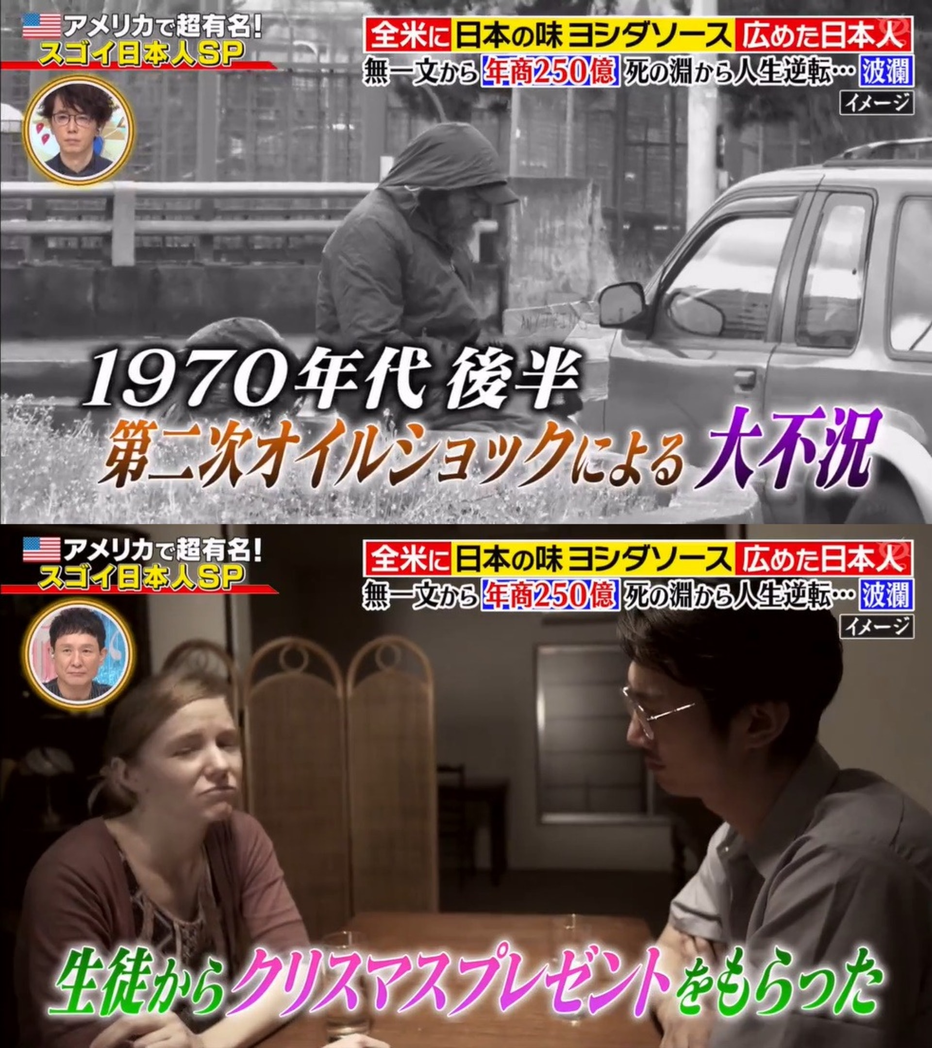 ▼1970年代末期美國經濟蕭條,空手道學校幾乎沒有學生,吉田投資失敗債務纏身,就連聖誕節的回禮都沒錢買。他想到以前媽媽調製的日本燒肉醬汁,就自己調製出來送給朋友當回禮,沒想到大受歡迎。