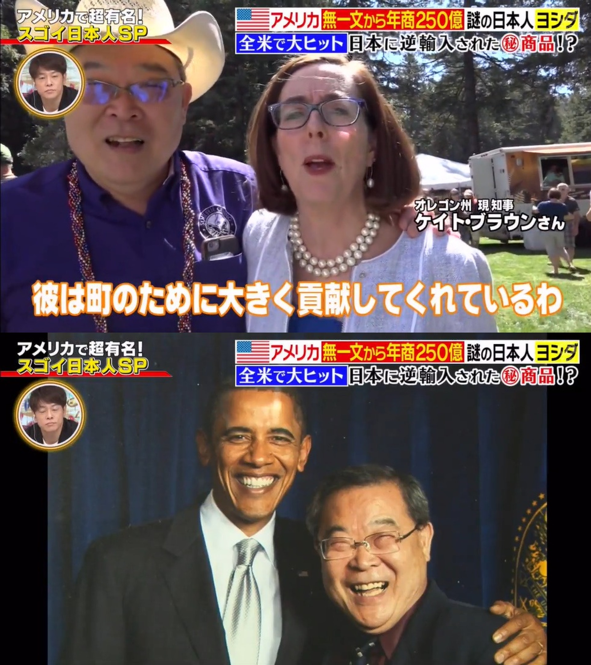 ▼吉田跟很多名人交好,俄勒岡州的兩位前州長、運動品牌Nike的前社長曾到他家來作客;現任俄勒岡州州長和歐巴馬都認識他。