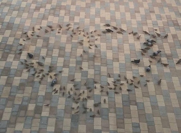 ▼1.「每天早上爸爸都在院子裡撒鳥食,他撒成愛心的模樣,媽媽醒來後正好能看到。」