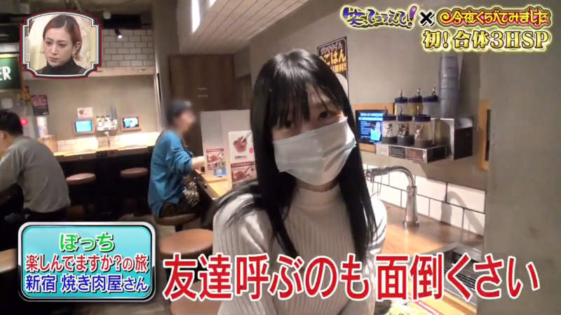▼節目首先採訪了兩位獨自去烤肉店吃飯的女生,這名女生表示,自己一個人來吃飯,是因為覺得約朋友很麻煩。