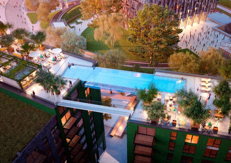 2022年01月03日倫敦西南部九榆樹區(Nine Elms)的「大使花園」(Embassy Gardens)建案有一座「天空泳池」(The Sky Pool)。這是全世界第一個懸吊於兩棟公寓大樓之間的透明空中泳池,距地面足足有35公尺。天空泳池啟用時就曾引發話題,最近這座泳池的管理費用再次引發討論~