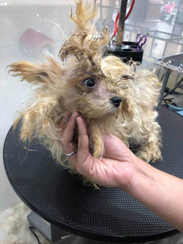 2022年01月05日不久前,寵物美容師Alicia Cen遇到了一個很特別的客人。他一手牽著可愛的小孩,另一隻手卻帶著一隻特別髒的狗狗。那是狗狗全身毛髮打結,臉上還禿了一塊,好像一隻流浪狗。但客人表示,他已經養這隻寵物狗「小歐」9年時間了。
