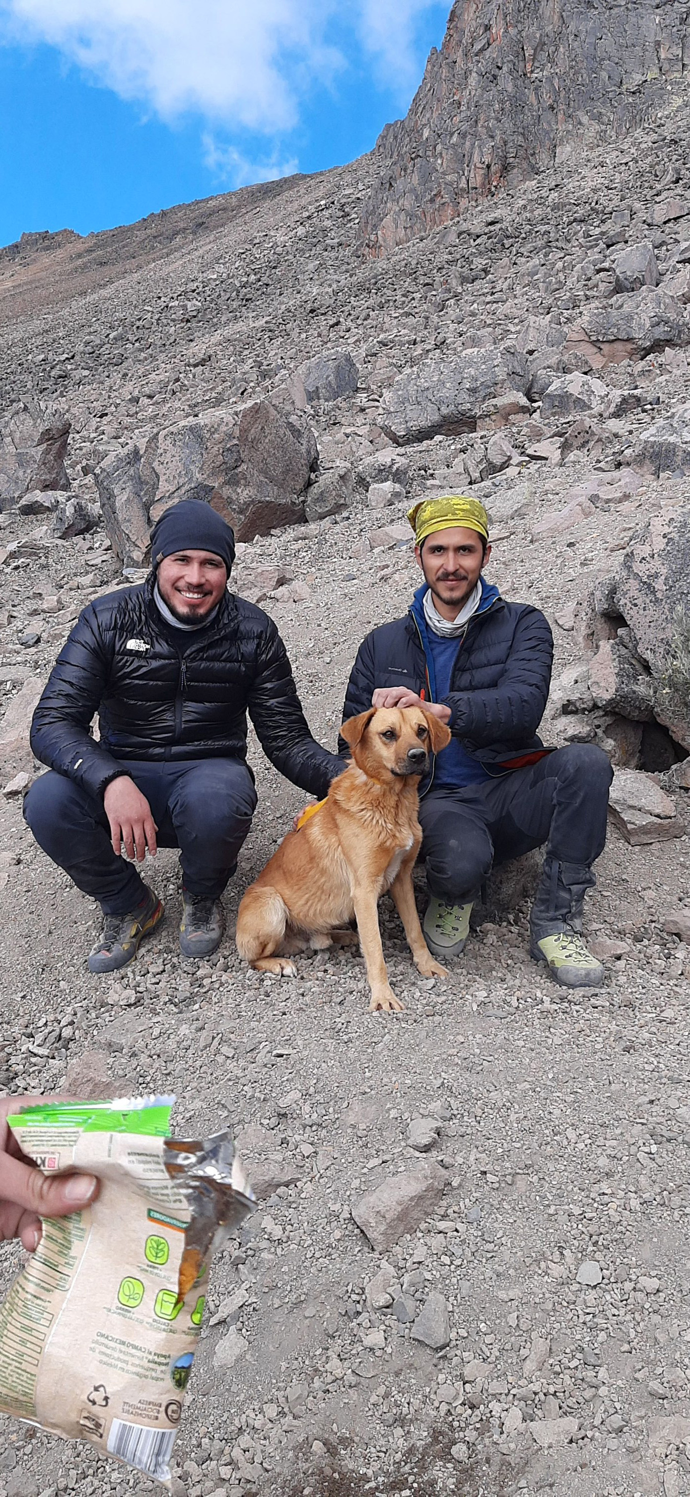 ▼從Layo分享的照片來看,El Canelo的狀態很不好,牠非常瘦弱、眼睛紅紅的,好像營養不良。其實被困山上的這段時間,El Canelo遇到過不少登山客,但牠不肯跟著下山,也不給人家抓。Layo和同伴組隊上山看到牠的身影後,給牠食物和水,努力釋出善意取得牠的信任,才找到機會把牠放進登山包。