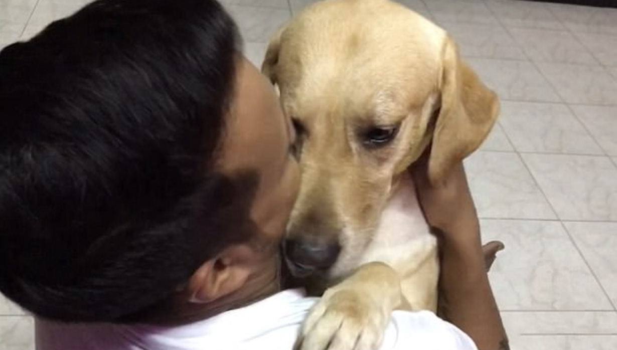 2022年01月11日當我們身體不舒服的時候,會到愛我們的人面前尋求安慰,沒想到動物也一樣。印度清奈(Chennai)有一隻狗狗Jack Daniel,牠的脖子上長了一個腫瘤。最近主人帶牠去獸醫院做手術,手術結束後,牠立刻撲到主人的懷裡撒嬌,好像在說:「剛才我好害怕…」