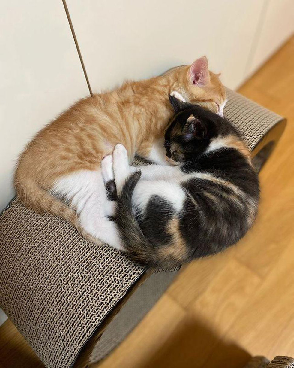 ▼現在小橘貓被取名為Max,三花貓叫Blue。Max的體型稍微大一些,Blue則比較親人,一直想要爬到人的大腿上撒嬌。