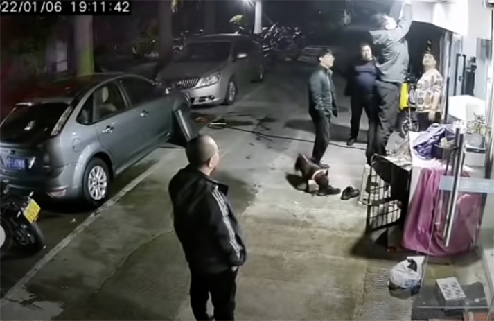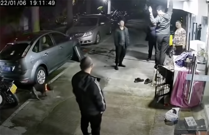 ▼從原po擷取的監視器畫面可以看到,這件事發生在1月6日,當時一群男人圍在店門口,專心看原po的爸爸修理燈泡。旁邊的黑狗也好奇地上前觀看,牠一邊走一邊聞,朝原po爸爸的鞋子近距離聞了幾下,結果很快就發現狀況不對,立刻跑到人行道旁邊嘔吐起來。