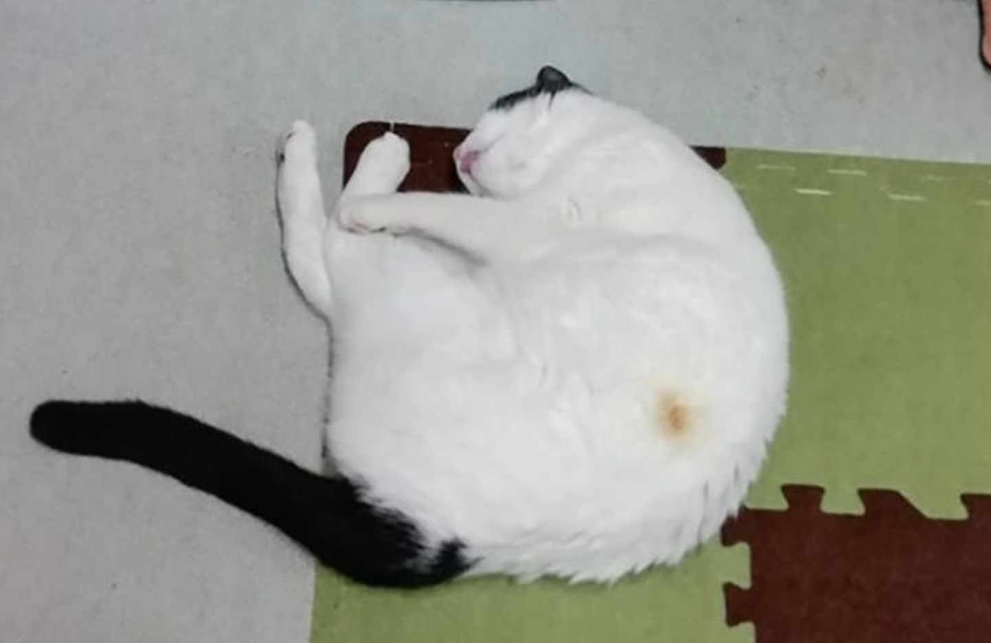 ▼從六花千代po出的照片可以看到,貓咪白色的毛毛中有一塊明顯被烤成了焦黃色,主人非常擔心,貓咪自己卻毫不在意。「去年聖誕夜的時候,白毛還完好如初。」