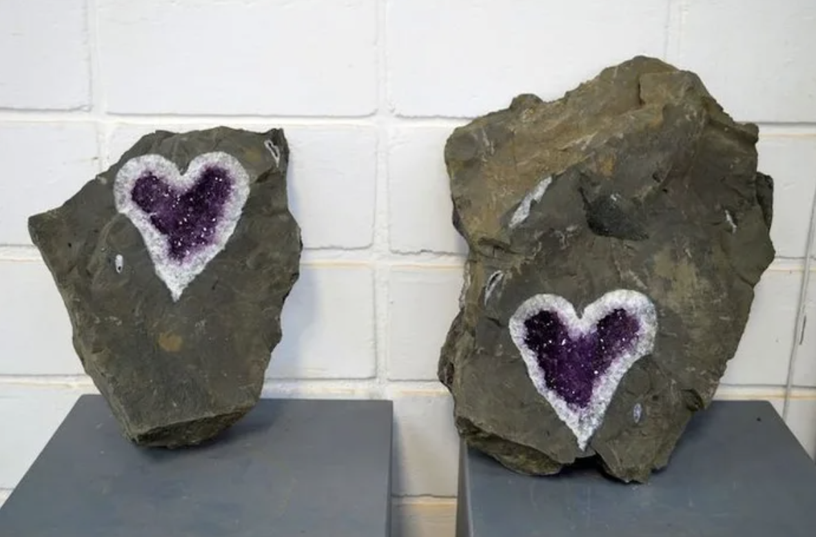 好浪漫! 紫水晶礦工「挖出一對愛心」 神秘「紫羅蘭晶洞」讓人一眼愛上♡