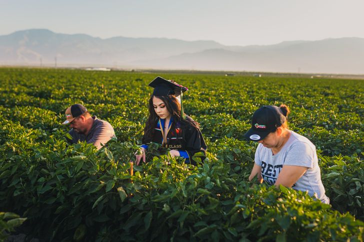 2022年01月17日美國加州大學聖地牙哥分校有一名女大生Jennifer Rocha,她來自一個墨西哥裔家庭。最近Jennifer畢業,順利拿到社會學學位,她決定在父母工作的農田拍攝畢業照,感謝父母的辛苦付出。這組特別的畢業照被po到學校的臉書上,很快就引發網友熱議~