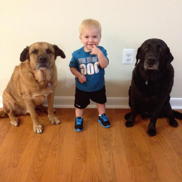 ▼Jen表示,他們家中養了2隻狗狗,而且年齡都很大了。Roman出生時,那2隻狗狗都陪在他的身邊,但Roman一歲半的時候,其中一隻狗狗走了。他們又領養了一隻5歲的狗狗,讓牠成為新的家庭成員。