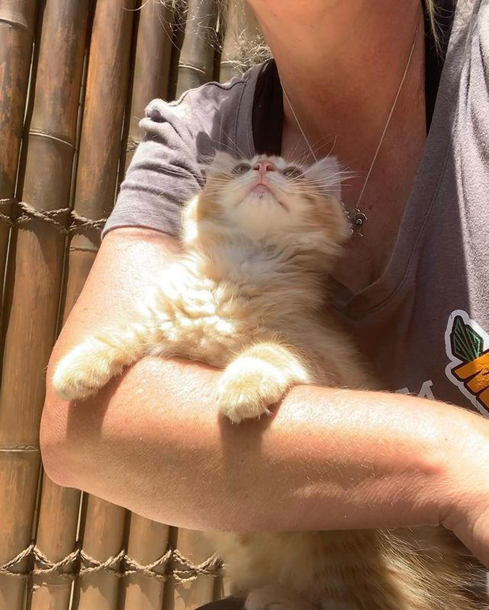 ▼Marlene笑說,每次把Dave抱在懷裡,牠都會發出可愛的呼嚕聲,那聲音聽起來超治癒。