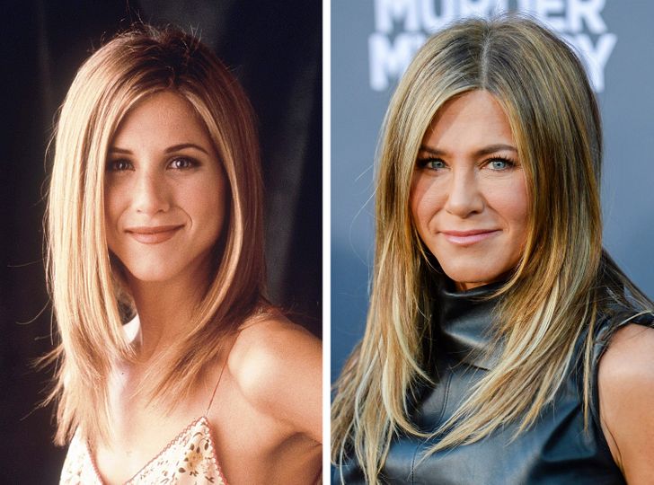 ▼珍妮佛安妮斯頓(Jennifer Aniston):28歲 vs 50歲。這位靠《六人行》風靡全球的女星,曾經是無數男生心中的女神。現在她仍舊美麗,歲月為她增添了更多韻味。