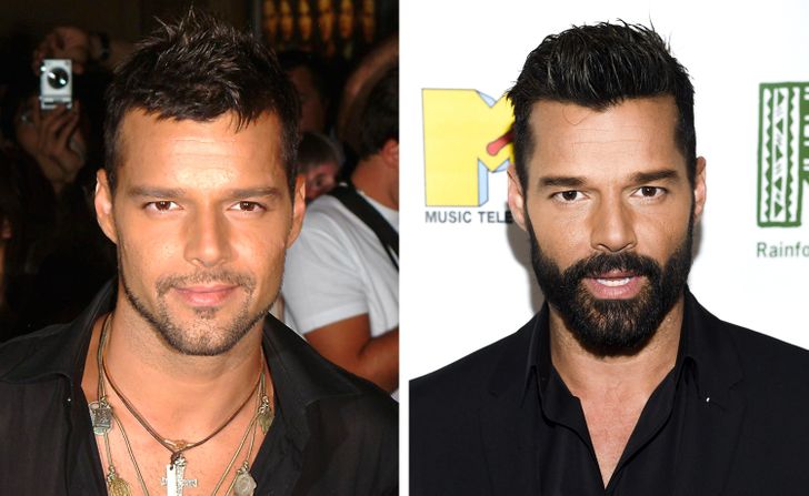 ▼瑞奇馬丁(Ricky Martin):34歲 vs 48歲。他過去曾被譽為「電動馬達」,憑驚人的表演力成為享譽國際的拉丁天王,那雙深邃的眼睛更加迷人。現在他的臉上多了濃密的鬍鬚,身材、皮膚狀態竟然都沒有變差。