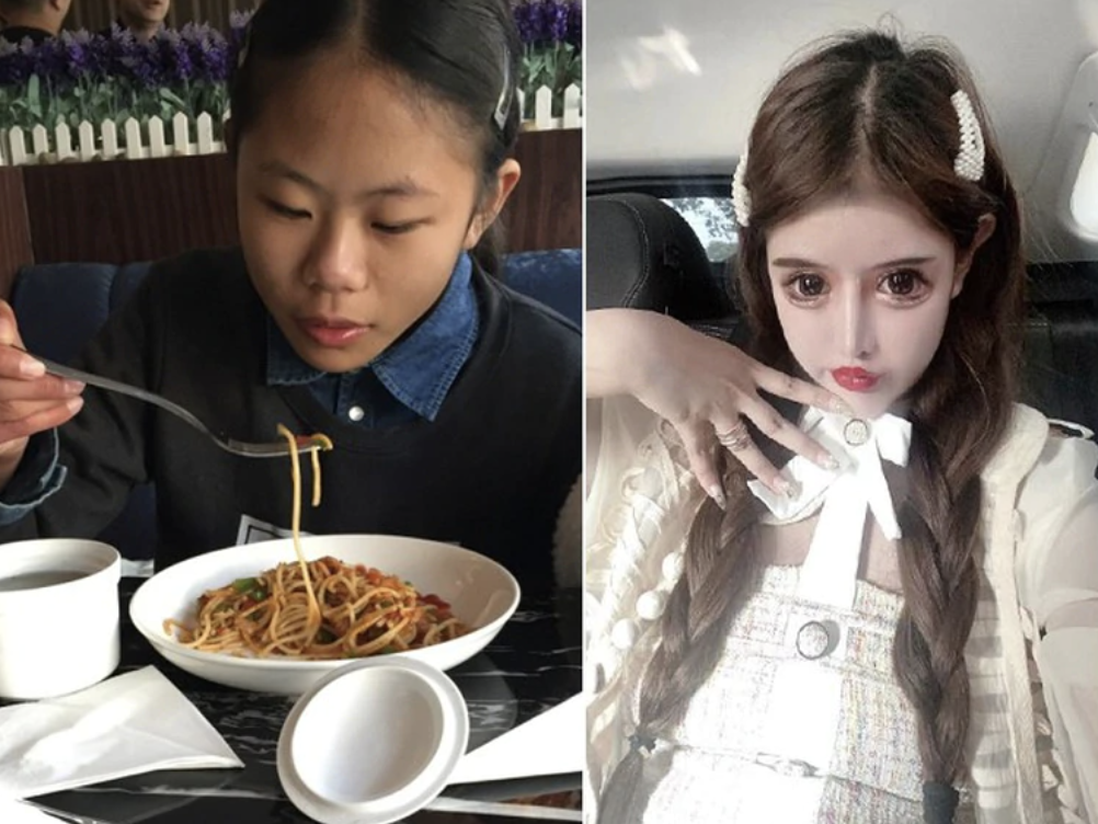 ▼從那之後,周楚娜迷上了整形,只要覺得臉上哪裡不對勁,就跑去動刀。她看到濾鏡自拍照,發現不滿意的地方也會去動刀。父母不同意的話,她就拿別人的身分證件,偽裝成年人,跑到「黑診所」進廠維修。