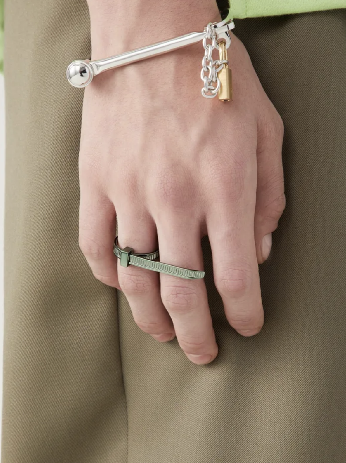 ▼這一系列飾品是AMBUSH 2020秋冬系列的一部分。AMBUSH一向以大膽前衛的設計而聞名,以前就曾推出過別針主題的飾品。這次以束帶為靈感設計的飾品更加豐富,有手環、耳環、戒指等等。