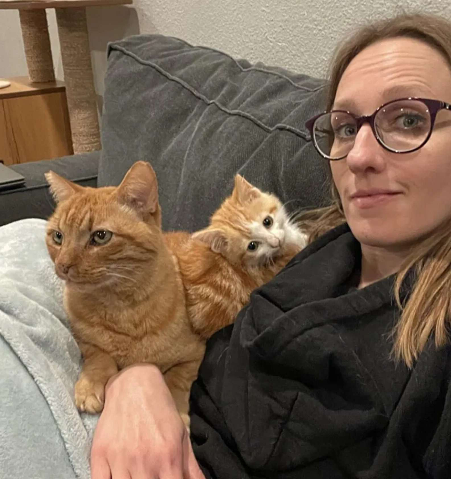 愛媽一看客廳發現「中途奶喵緊黏大橘」 她傻眼:我家沒這隻貓啊!