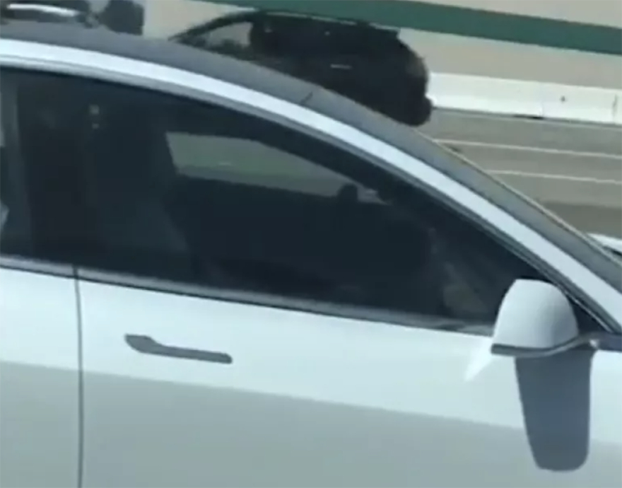 2022年01月22日最近美國加州一名特斯拉駕駛被拍到在高速公路上呼呼大睡。目擊者Shawn Miladinovich在南加州405號州際公路上看到了這驚人的畫面。他表示,那位駕駛的方向盤周圍似乎綁著什麼東西,如果物品不慎掉落,很可能發生意外。當時那輛特斯拉的時速已經達到105公里,這是非常危險的。