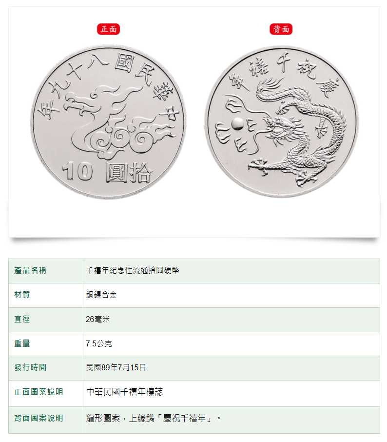 ▼打開中央造幣廠的網頁,能看到不少特別款式的10元流通幣。被暱稱為「龍銀」的紀念幣是流通貨幣,但在市面上仍非常罕見。拍賣網路上,凡是特別款式的10元硬幣,價格甚至能來到450元台幣。