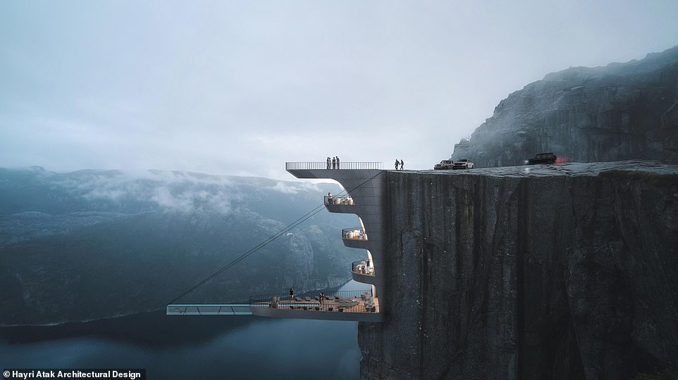 ▼Hayri Atak設計過很多令人驚嘆的建築,2019年時他們公布了一個計劃,準備在挪威西部峽灣Ryfylke區的懸崖上建造一間酒店,酒店是懸崖的一種延伸,還帶有底部透明的泳池。