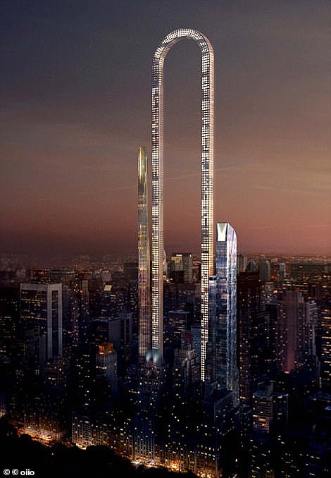 ▼2017年時,紐約建築事務所Oiio設計了一棟概念摩天大樓,它呈現大彎曲的造型,總長約1.22公里,號稱世界最長的建築。