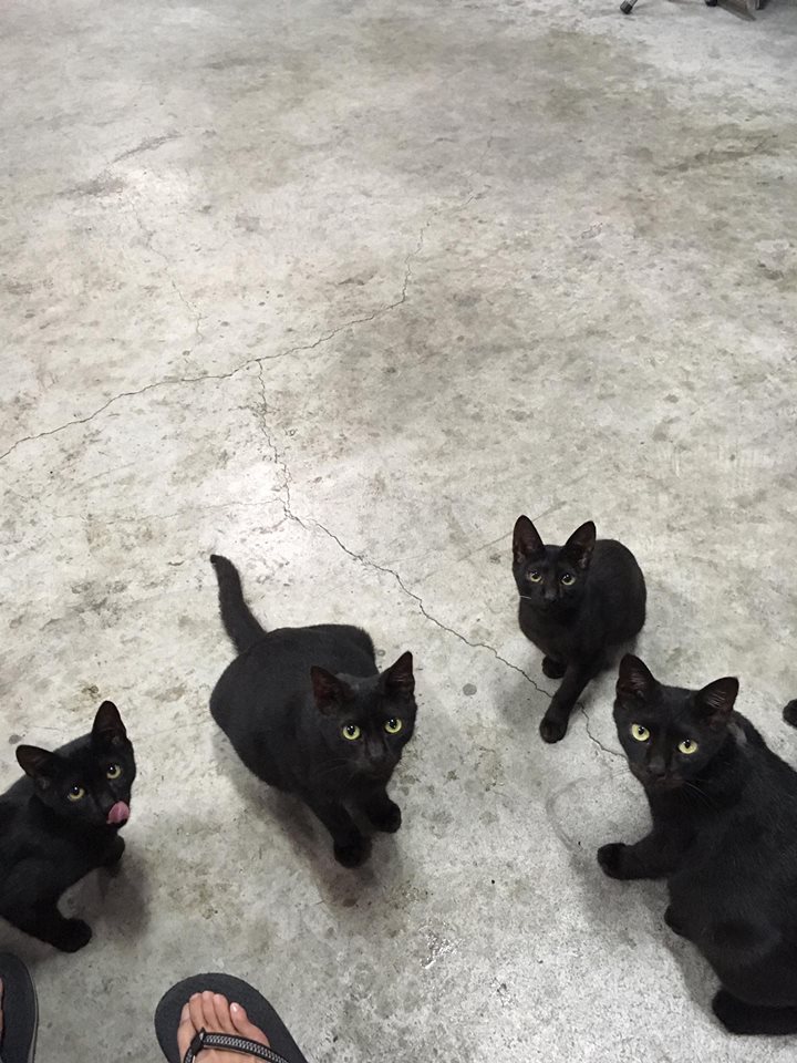 感覺越餵越多,黑貓家族全都跑來了!牠們皮毛一樣,長得也很像,應該是一家人吧,全家出動賣萌討食,喜歡貓的人心都要融化了。有能力的話幫一下身邊的浪浪,牠們會很感激的。