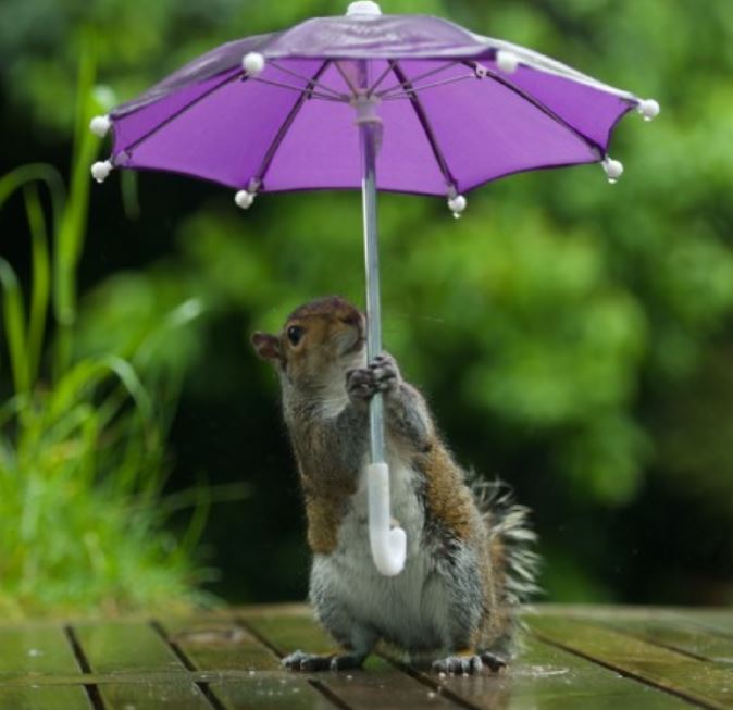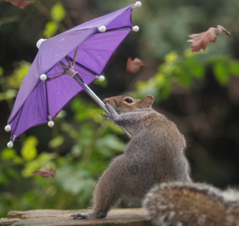 工讀生出來!他在野外放道具「給小松鼠自由發揮」 拍出激萌畫面:下雨天還會撐傘