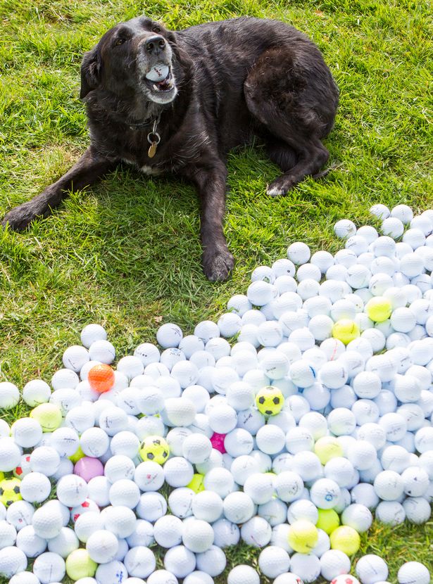 ▼蓋爾從2005年開始養這隻名叫潔西的狗狗,從此便開始訓練牠撿球。他只用了三天的時間訓練,潔西就可以熟練的從球場的各個角落把球叼回來,並且連一些在地下埋了10到15年之久的球都給挖了出來,應該是憑藉狗狗天生敏銳的嗅覺聞到了高爾夫球的氣味。