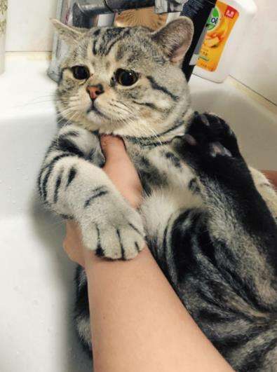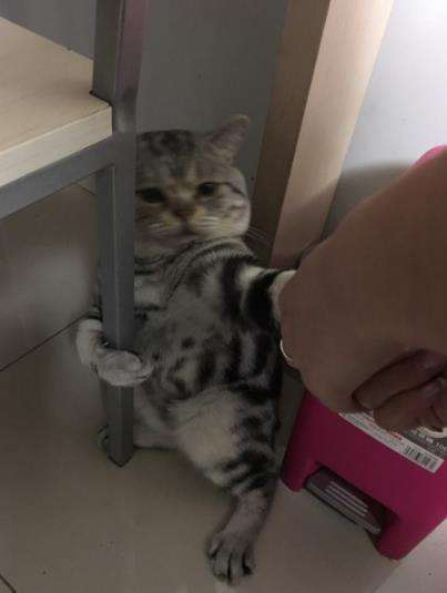 ▼微博一位網友透露,當他召喚喵咪去洗澡時,牠就會緊抱住椅子腿,怎麼也不鬆開,任憑主人怎麼拉拽,就是一副不願屈服的表情。