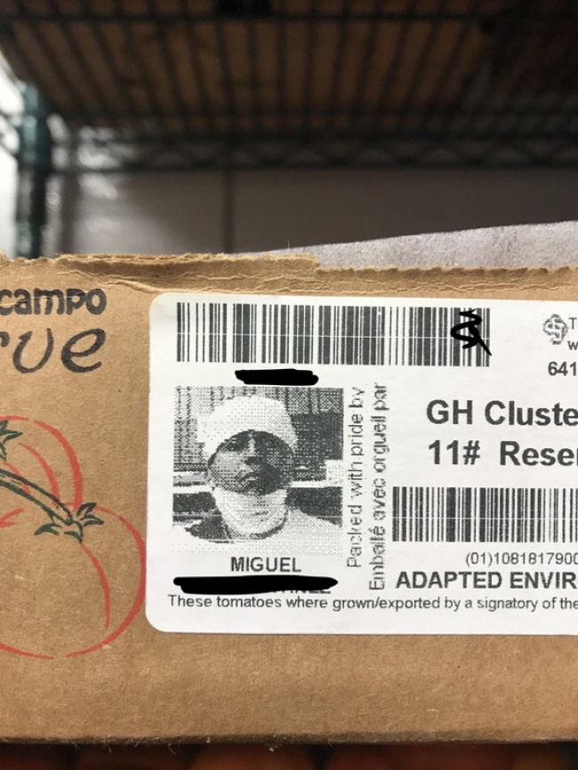 ▼這箱農產品的箱子上還有著包裝者的名字和照片!