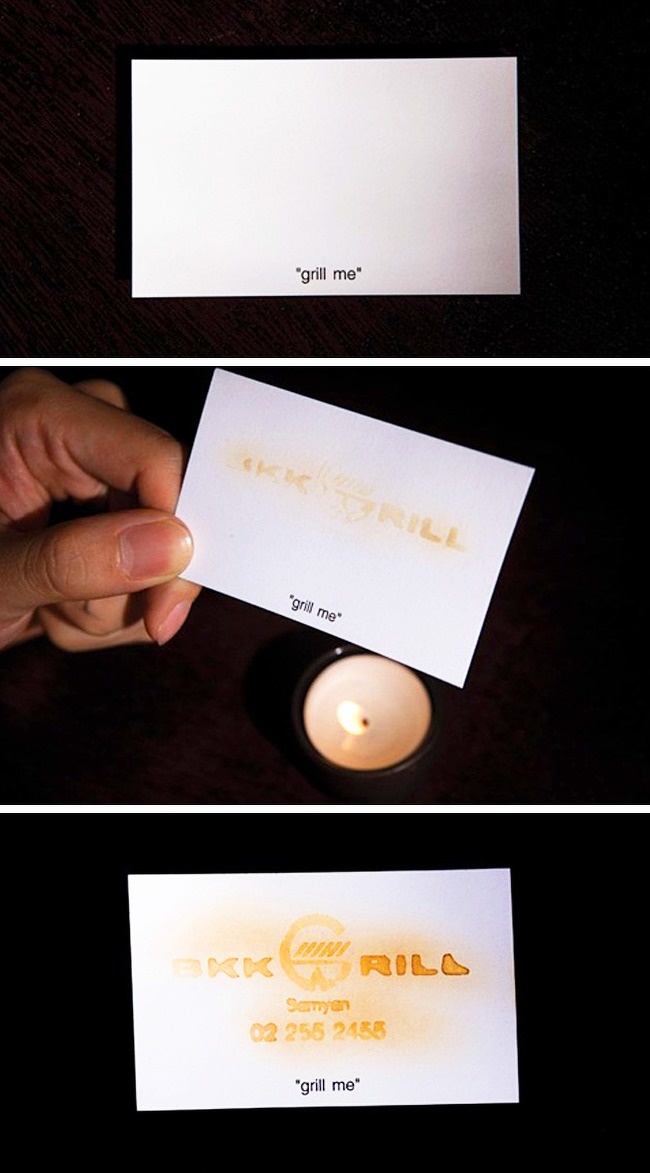 ▼牛排館的名片,必須用火稍微加熱才會顯現!