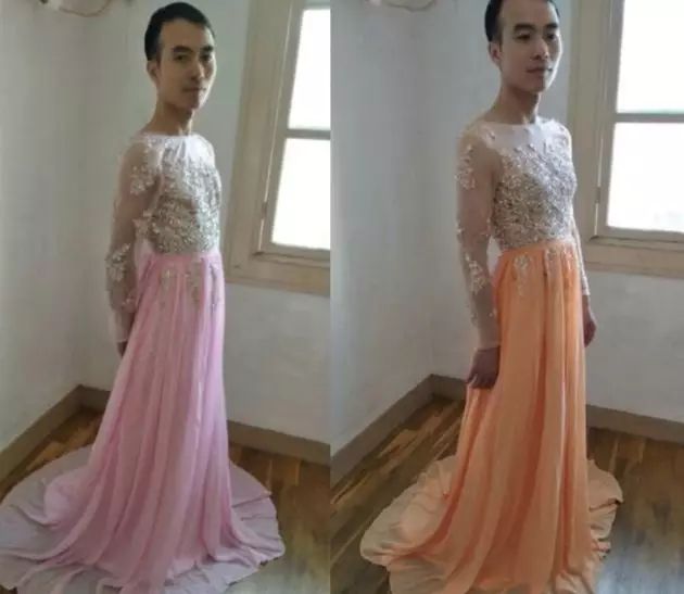 ▼安卓想買一件禮服在重要場合穿,她看上了一件款大露背的長袖薄紗禮服,要價約100美元(3000多新台幣),想到價格不低,又怕買回家後不滿意,她於是請賣家拍幾張實拍照。沒想到賣家實在太敬業,親自上陣將這款禮服的各個顏色都試穿拍照。