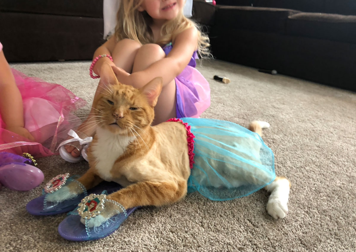 ▼Erin將貓咪與孩子們親密互動的畫面拍攝下來,她認為這是很珍貴的回憶。Bailey每天都陪在Abby身邊,他們一起玩耍、一起睡覺,Abby還會唱《你是我的陽光》(You Are My Sunshine)哄Bailey入睡。
