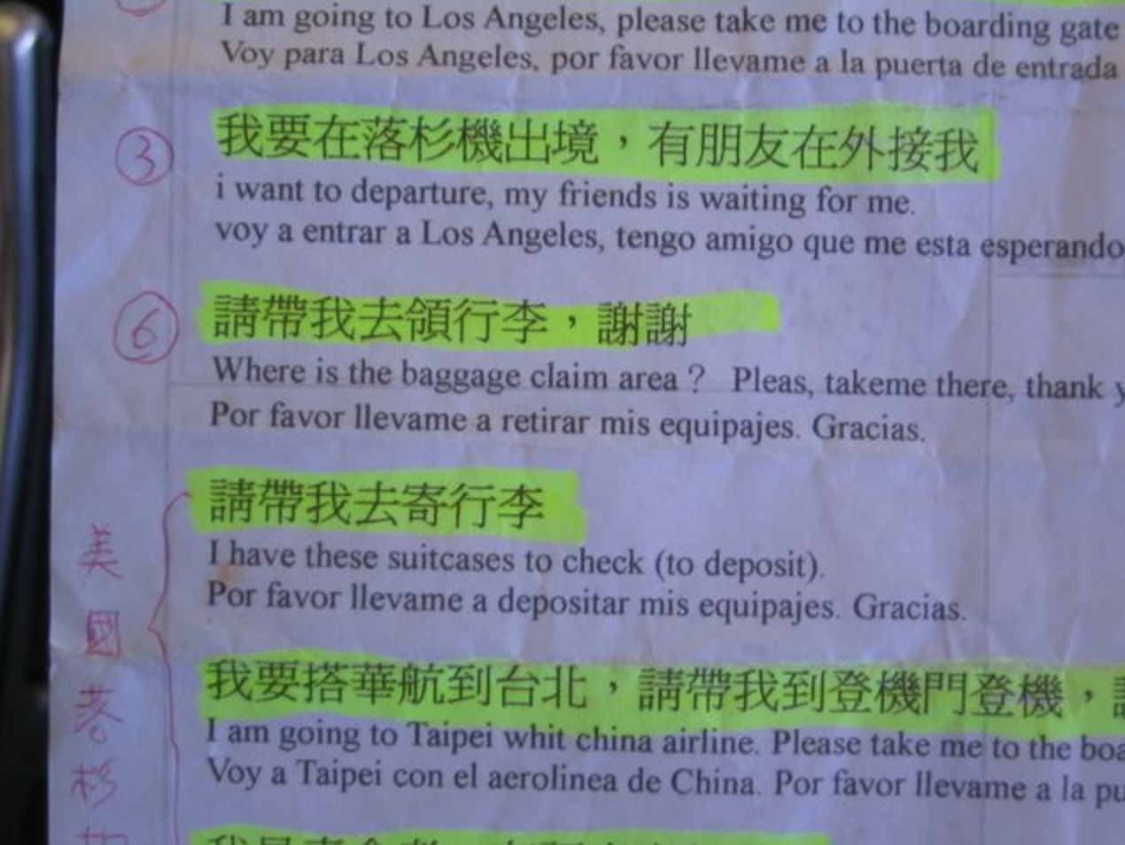 ▼為了了思思念念的女兒,阿嬤真的拼了。在洛杉磯等待的時候,她巧遇一名台灣記者,馬上就聊了起來。原來女兒一字一句寫好有用的對話,還弄好順序方便媽媽可以直接指給別人看。而且還要阿嬤在包包上掛著紙,寫上大大的「徐鶯瑞」,讓接機友人可以容易辨認。