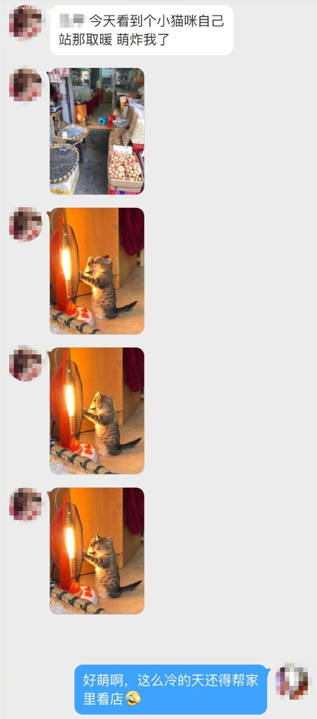 ▼取暖同時順便顧店,小貓咪搞笑萌樣網友立馬分享給好友。