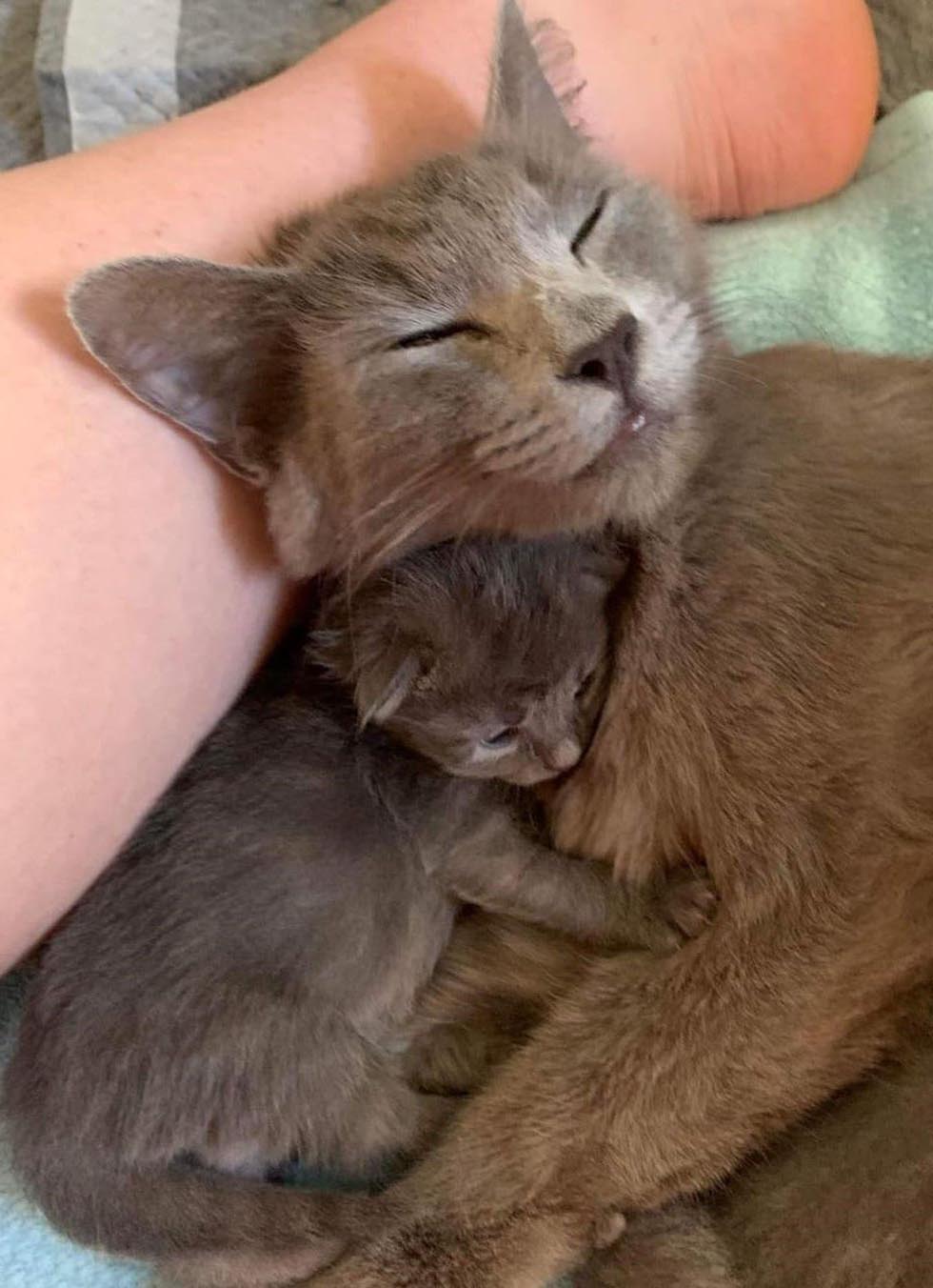 ▼BFF的Nikki說,貓媽媽骨瘦如柴,連行動都很困難。雖然牠的情況很糟糕,但牠把小貓們都照顧得非常好,牠是一個很棒的媽媽。