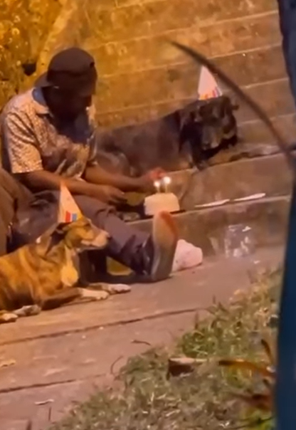 2022年02月10日他真的很愛狗狗~日前哥倫比亞布卡拉曼的一名網友去公園散步時,偶然看到了令人感動的一幕。只見一名叫Choco的街友帶著2隻狗狗坐在台階上,Choco拿出一個蛋糕,並點燃蠟燭,正在為狗狗慶祝生日。那場小型的生日派對非常溫馨。