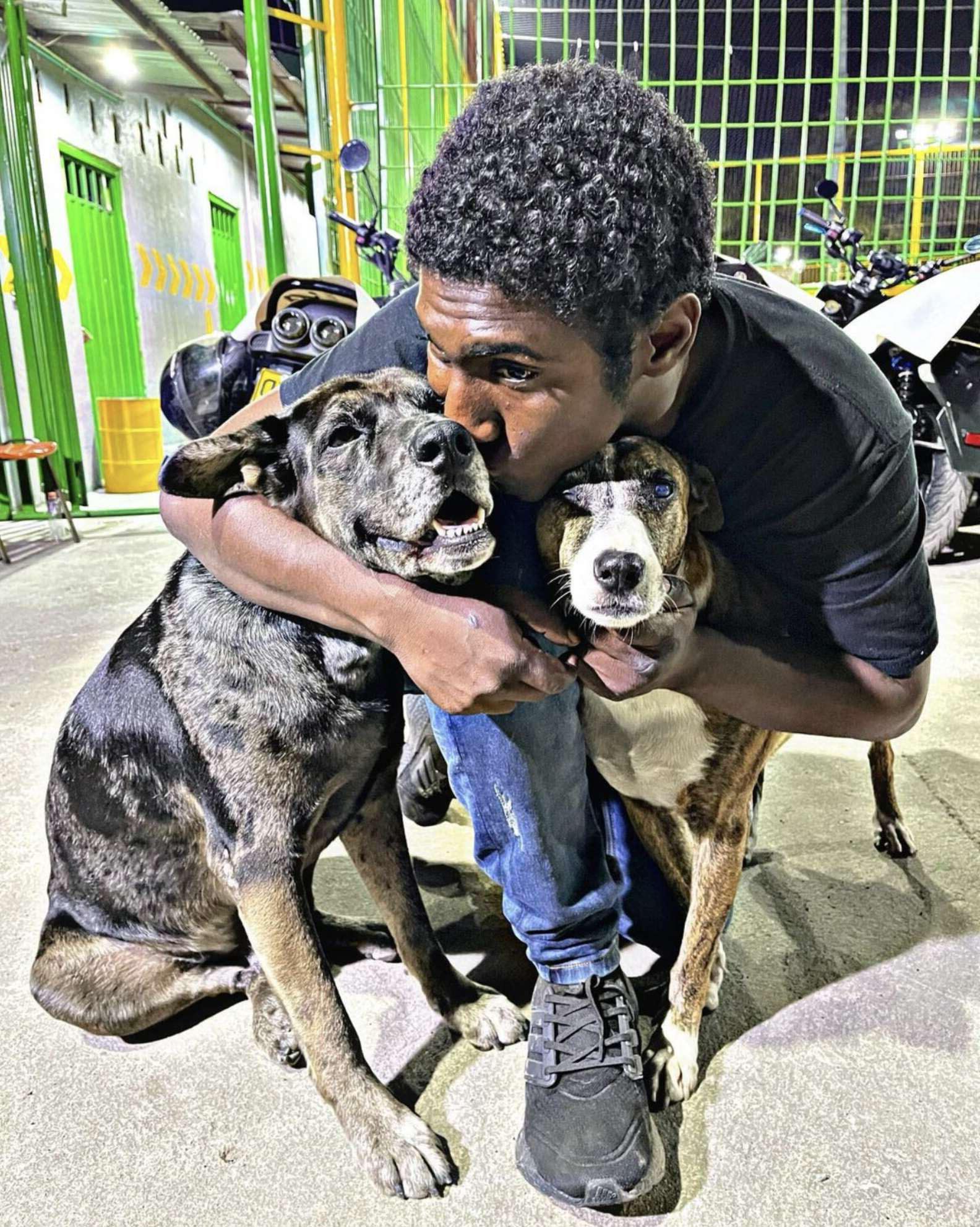▼這名網友後來上前跟Choco閒聊,得知2隻狗狗分別叫Shaggy和Nena。Choco表示,自己逃離家暴家庭,流落街頭多年,幸好有這2隻狗狗陪伴,他把狗狗們當成家人來看待。