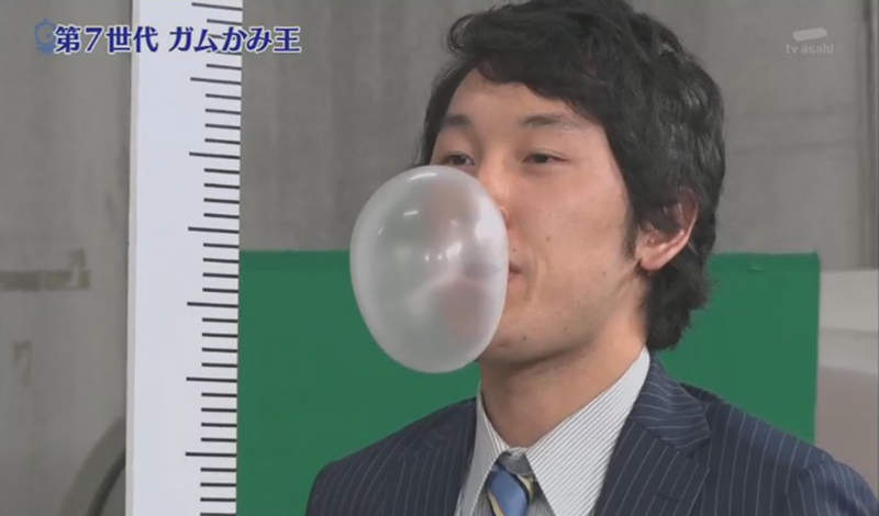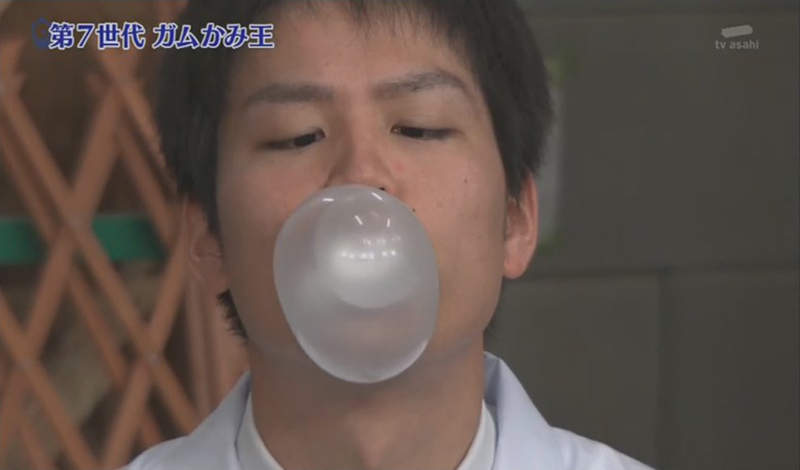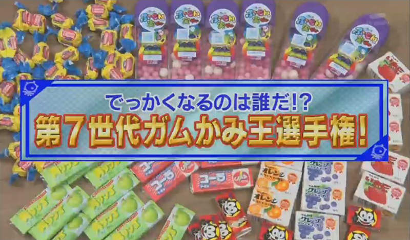 ▼為此,日本朝日電視台的綜藝節目「タモリ倶楽部」召集多位藝人舉辦吹泡泡糖比賽。