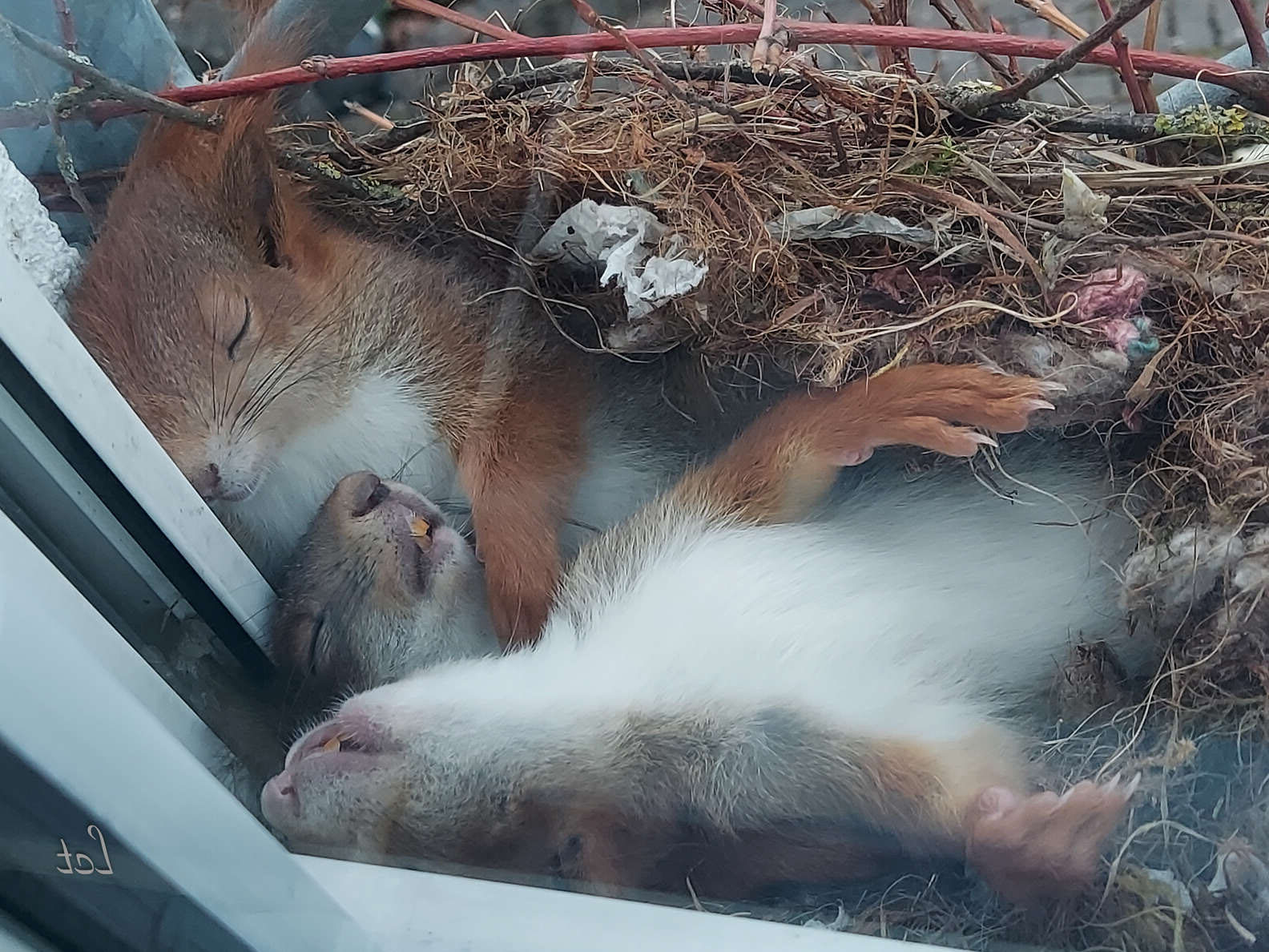 松鼠跑他家窗台築巢! 他不趕走某天拉窗簾見「一家安心午睡」萌翻:好幸福~