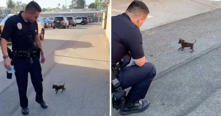 巡邏救下「黑色小不點」後牠一路緊跟! 警察當場被融化:就任命你為警犬吧❤️