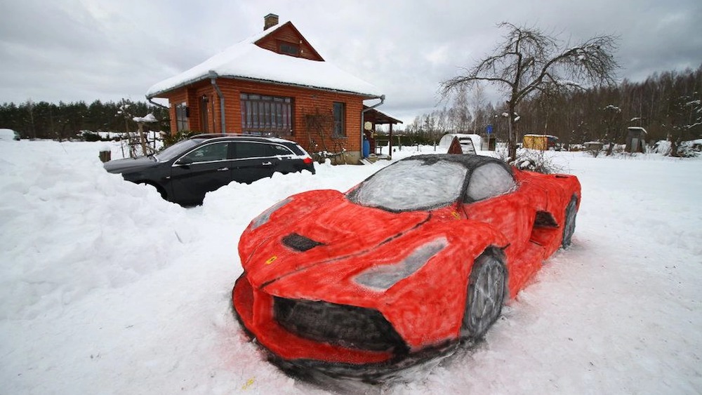 ▼立陶宛夫妻用雪雕刻出一輛法拉利LaFerrari: