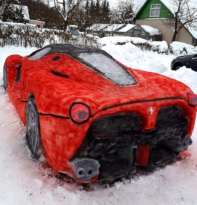 ▼這輛雪雕法拉利是當地居民Donata Bugiene的丈夫製作的。Donata將丈夫製作的過程拍下來,並介紹說這輛雪雕法拉利的尺寸跟真實的法拉利LaFerrari一模一樣:「我們認為如果不能買法拉利,就自己造一輛!現在沒有人可以否認,有一輛法拉利就停在我們的院子裡!」