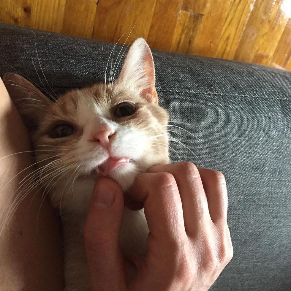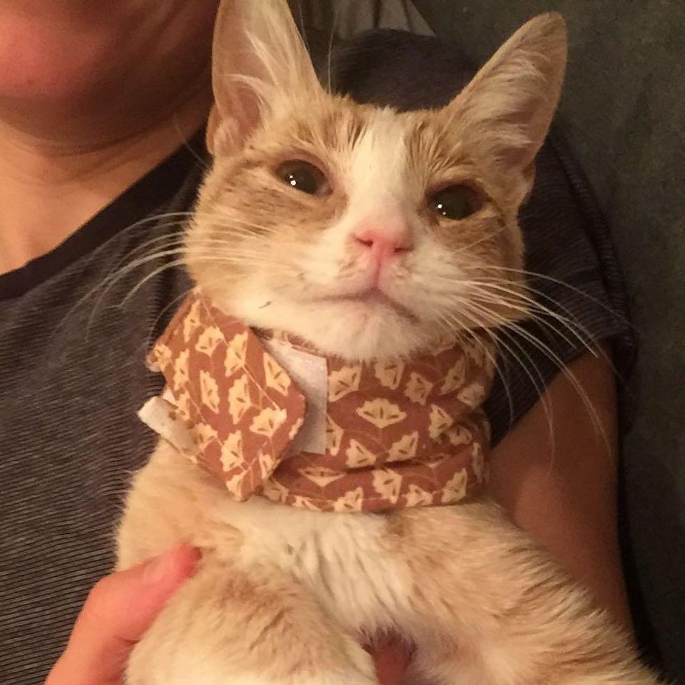 ▼現在Clayton已經完全適應了新家中的生活。牠非常親人,對同類也很友善。Rebeccah經常帶貓咪回家中途,Clayton就是她的好幫手,會幫馬麻照顧那些貓咪。