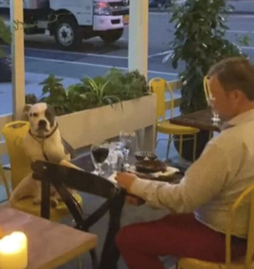 ▼這一對特別的客人成為了餐廳中的焦點,就連服務生都很喜歡那隻狗狗。Gemma Colón說:「我聽到有女服務員評論那隻狗狗有多優秀,那位飼主說,他不管去哪裡都會帶著狗狗一起去。有可愛的狗狗陪伴,這絕對是一場非常愉快的約會。」